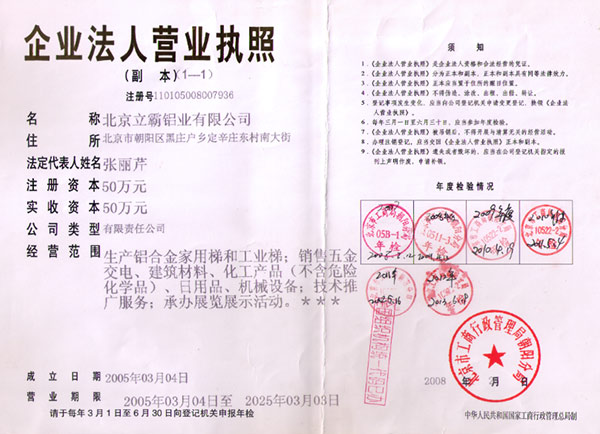 北京立霸鋁業(yè)有限公司是集研發(fā)、生產(chǎn)和銷(xiāo)售各種鋁合金工業(yè)型材、管材、板材、鋁合金梯子材料及梯子配件、鋁合金梯子、絕絕梯子、鋁合金液壓升降平臺(tái)等系列產(chǎn)品的專業(yè)廠家。